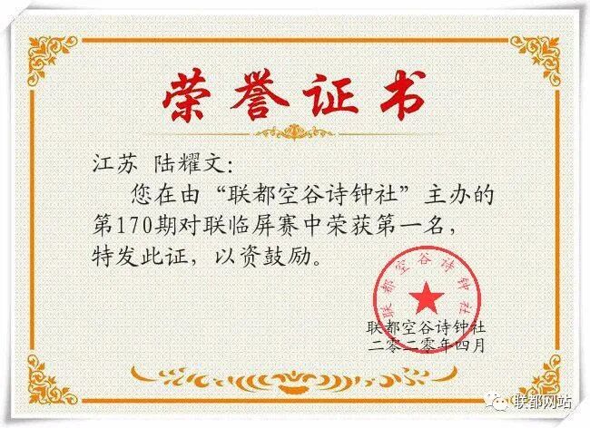 “联都空谷诗钟社”第170期临屏联赛结果公布