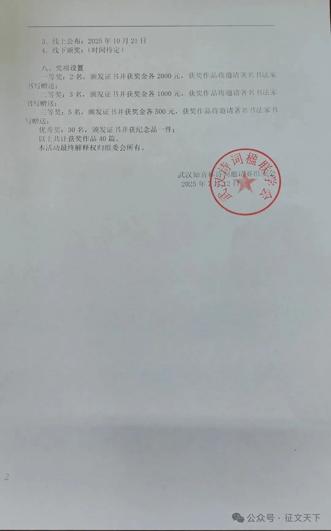 3.线上公布:2025年10月21日