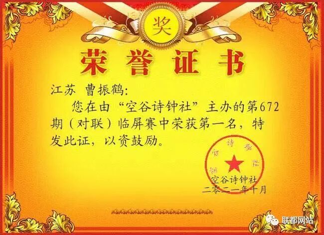 “空谷诗钟社”第672期(对联)临屏赛结果公布