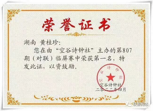 “空谷诗钟社”第807期(对联)临屏赛结果公布