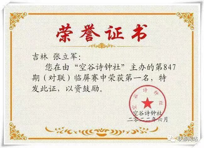 “空谷诗钟社”第847期(对联)临屏赛结果公布