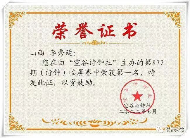 “空谷诗钟社”第872期(诗钟)临屏赛结果公布