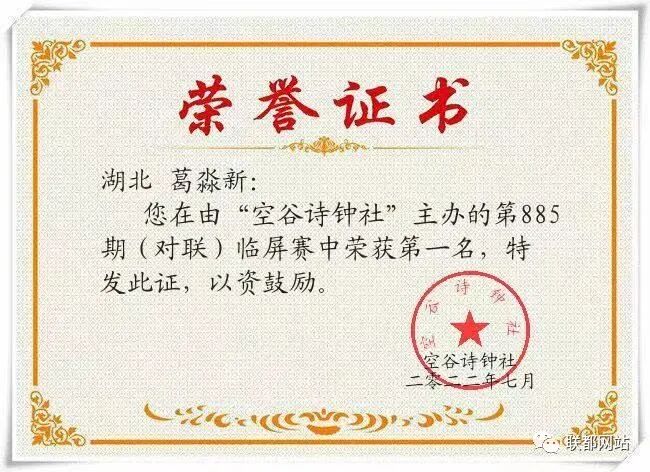 “空谷诗钟社”第885期(对联)临屏赛结果公布