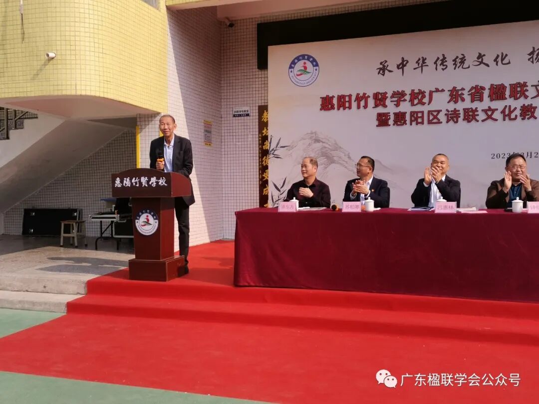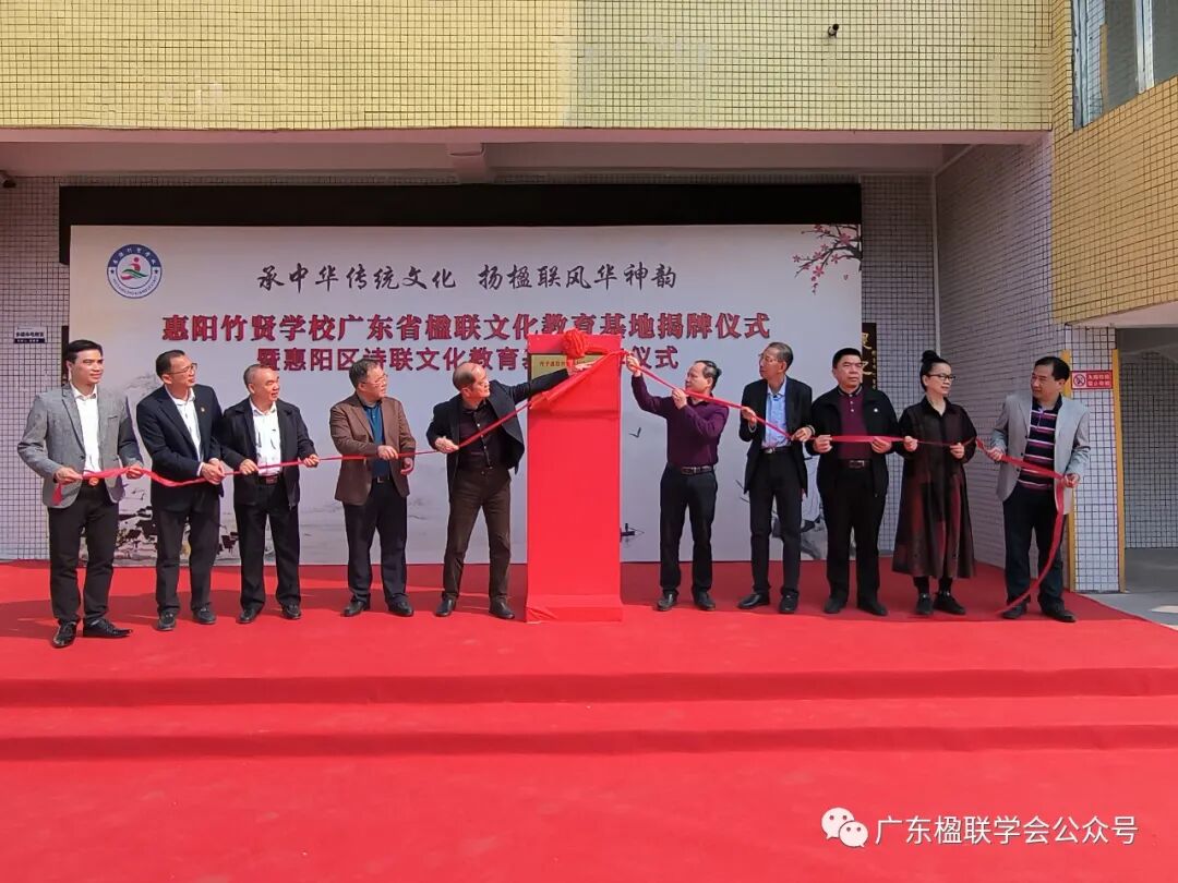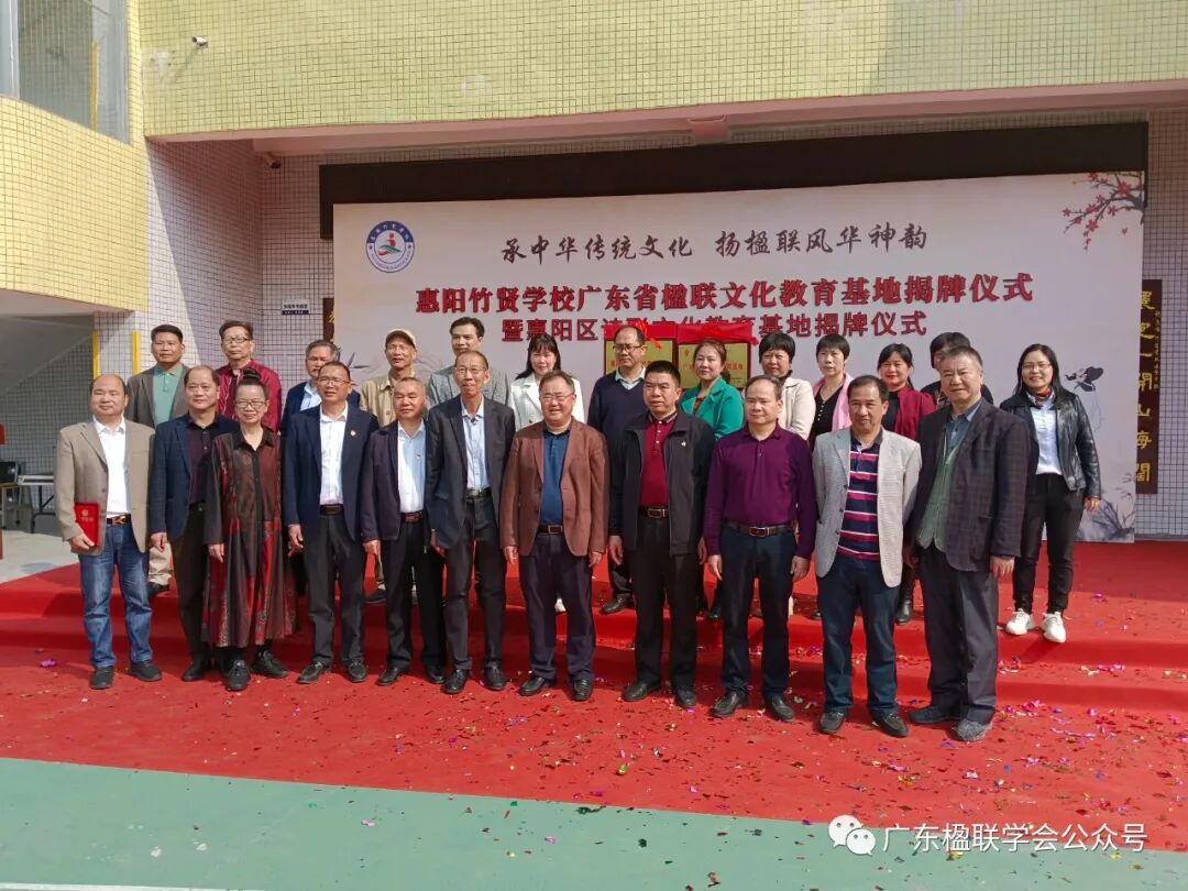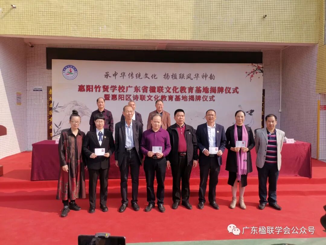 2023年3月2日,广东楹联学会常务副会长梁健等一行应邀出席在惠州市惠阳竹贤学校举行的“广东省楹联文化教育基地揭牌仪式暨惠阳区诗联文化教育基地揭牌仪式”活动。