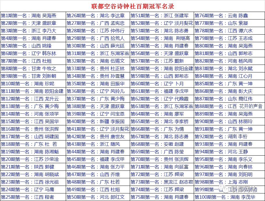 “联都空谷诗钟社”第153期练笔活动结果公布