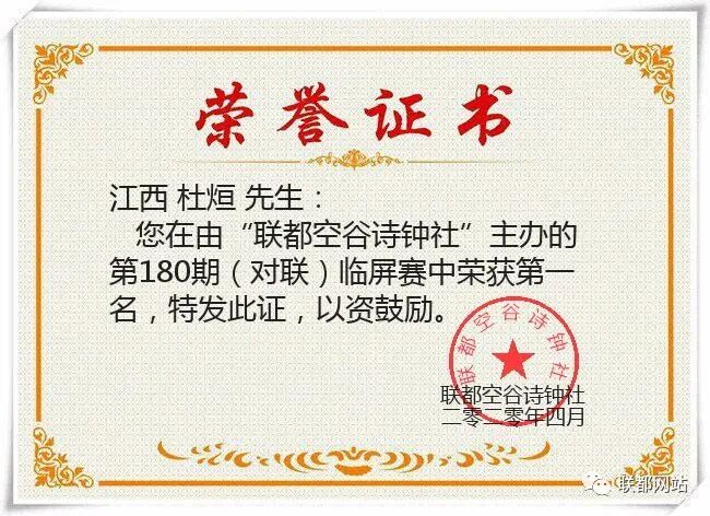 “联都空谷诗钟社”第180期(对联)临屏赛结果公布