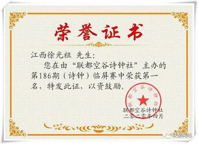 “联都空谷诗钟社”第186期(诗钟)临屏赛结果公布