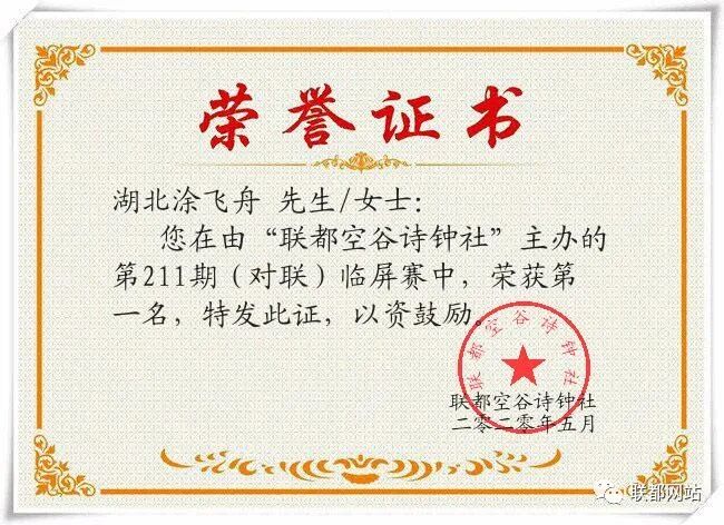 “联都空谷诗钟社”第211期(对联)临屏赛结果公布