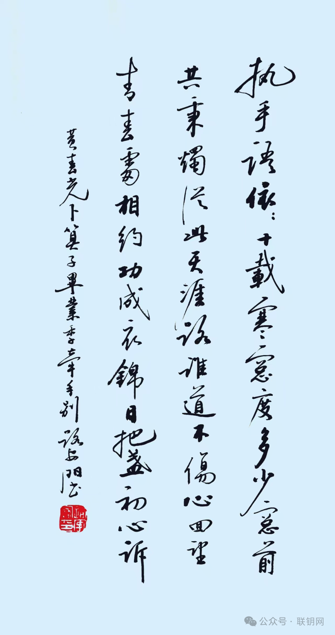 简评:聚焦毕业前的备考时光,以“追梦寒窗”“晨练夜读”的细节还原校园奋斗图景,“亲湖畔” 的场景注入青春浪漫。“同心绾”的信物意象将离情具象化,“莫道离情如逝水”的哲思突破一般离别词的哀婉,以“长系”的坚韧收束,既见“艺粹心花”的求学热忱,又含“骊歌未散”的同窗情谊,于写实中见雅致。
