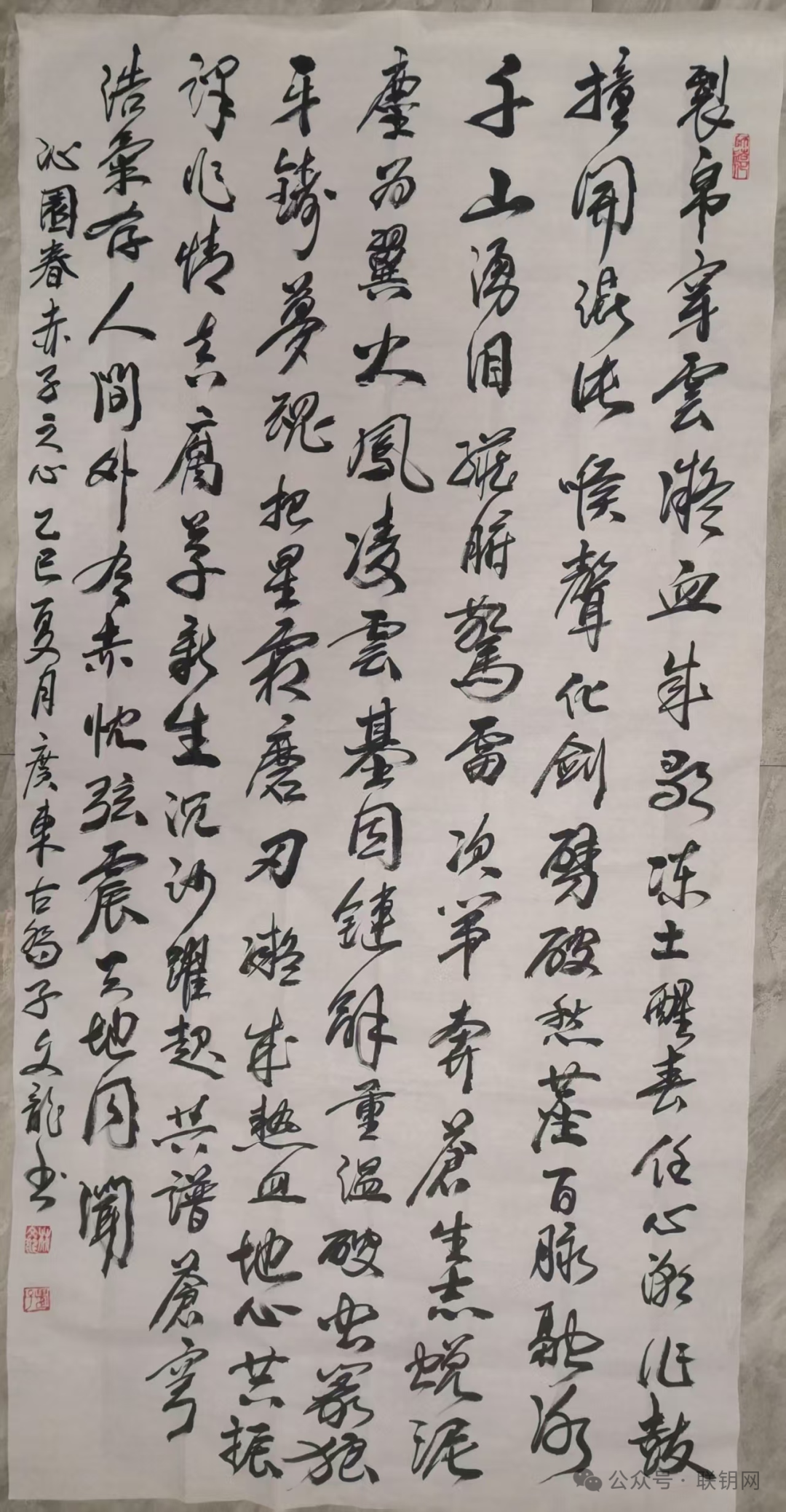 一卷铺开,字句千钧,意韵激昂。念心潮情涌,纸间流淌;为奔远梦,笔下如狂。谱写新歌,扣题解惑,仔细推毃底气长。凝思处,忆沧桑过往,风雨担当。