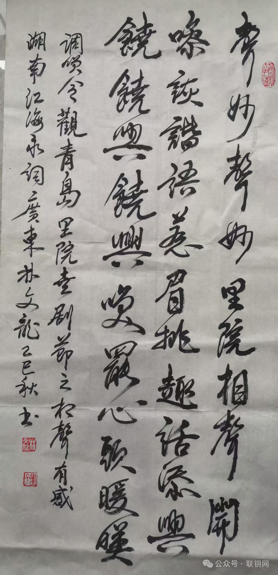本期赛题【调笑令・观青岛里院喜剧节之相声有感】,依《调笑令》王建体,单调三十二字、三换韵,遵词林正韵(以搜韵网检测为准)。关键要写出青岛里院的街区特质,更得有相声“逗捧互动、包袱抖响”的喜剧场景,把观演的欢悦和对生活的感悟融一块儿,不能光写喜剧没里院味儿,也别缺了“调笑”的诙谐劲儿。