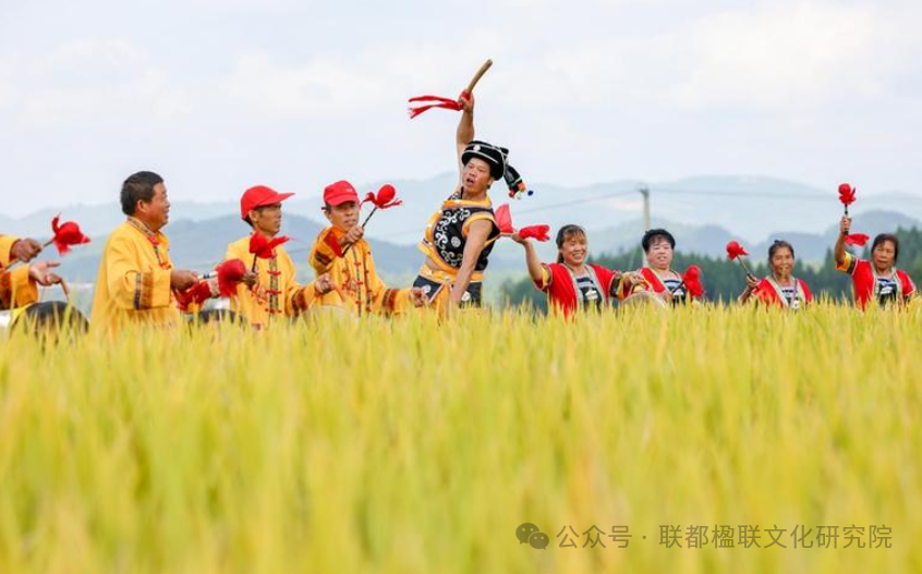金风送爽,看稻浪滚、棉海翻、包粟昂首,三农在野庆丰年,翩翩起舞;