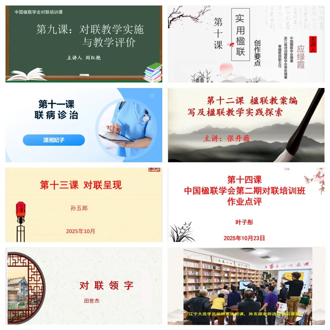 屏传大雅续薪火 责鉴初心毓栋梁 对联师资培训 中国楹联学会 第二期对联师资培训工作综述 2025年10月10日至23日,中国楹联学会第二期对联师资培训在学会的领导下,在学会领导的指导、参与下,由培训部执行,圆满完成为期14天的线上培训工作。本次师资培训,参训学员在知联、赏联、作联、教联、用联能力等方面得到普遍提高,学员对联兴趣更为浓厚,对联视野进一步拓宽,在对联鉴赏能力、创作水平、教学实施及应用实务等方面均取得了长足进步,收到了预期效果。 本次培训聚焦教学质量与学员成长。教学安排上,共完成14课网上教学内容,累计28学时,师资配置兼顾专业性与统筹性,讲师由13位对联专家组成,形成了高效的教学团队。二百余名学员来自全国28个省(直辖市)、自治区,年龄跨度从20多岁至80多岁。所有学员均通过结业测试,圆满达成“培养专业对联师资、推动对联文化传承发展”的目标。 工作综述 精心谋划筹备 筑牢培训基础 本次培训紧扣“实操落地、高效有序”核心目标,课程设置精准对接培训需求,在课件内容上强化例联支撑,并针对各类突发情况制定周密意外预案,通过多维度安排,全力确保培训全程顺畅、成果扎实。 领导高度重视,全程统筹指导。学会领导亲自做了开班与结业讲话,并亲自授课,从招生启事发布、广泛动员,到报名审核登记、对接学员、制作及发放证书、学员入会等各环节工作,都全程跟踪指导、协助培训部开展各项工作。 策划实施步骤,制定意外预案。培训部制定《对联师资培训实施方案》,明确培训目标、课程体系、招生计划、时间安排等内容,为培训有序开展奠定了坚实基础;对教学中可能出现的断网、误课、时间空余等意外情况,均提前制定了应对方案,准备了机动授课备选课件及针对性答疑文本。 多维推进招生,扩大培训覆盖。培训部在正式培训前一个月开始启动招生工作,以中国楹联学会官网为信源平台,同步通过学会公众号、对联及诗词爱好者微信群及授课讲师发布招生信息,扩大受众覆盖面,广泛拓宽宣传推广渠道。培训部还与学会理事及部分地方楹联组织骨干建立直接联系,单独推送招生启事,针对性动员更多行业骨干参训,增加了参训学员的地域覆盖面。 科学有序开展,增强教学实效 优选教学平台,科学设置课程。通过网课试验,反复比照,最终选定腾讯会议作为教学平台。该平台既丰富了师生课堂互动形式,又增强了网络安全性与可靠性,实践应用效果良好;在课程设置上,改变以往以创作为主的授课内容,本次培训以提升对联鉴赏力为重点,新增对联应用力教学模块,保证教学实施内容占比,兼顾了理论学习与实践应用。 严选讲师团队,打磨优质课件。为确保学员能成长为“懂联、会教”的师资,培训部在讲师与课件上严格把关。在选择授课讲师时,结合课程需求,从专业知识、教学经验、思想品德、教学效果、普通话水平等维度选择讲师,同时兼顾地域、职业、年龄、性别等多元因素,形成了“老中青”结构、实力雄厚的讲师团队。为保障授课质量,协调每位讲师提前熟悉线上授课流程并试讲,对部分讲师的课件结构与内容也进行了反复打磨,提升了课件质量。 多元教学方式,增强课堂实效。采用讲师线上与课件同步“出镜”的教学方式,增设课间互动环节,通过实时提问、观点交流活跃课堂氛围。将课间答疑与课后微群答疑相结合,与学员随时交流和探讨问题。同时配套设置每课专属作业、集中作业点评、结业测试,增加测试后的学员分享讨论环节,形成“讲解—互动—答疑—练习—点评—实战(测试)的完整学习闭环,让整个培训过程形式丰富多元、合理有序,全方位强化课堂实效与学习成果转化。各位讲师不仅在群内答疑,部分讲师还把自己在本次授课内容之外的对联教学内容分享给大家,学员们纷纷表示受益匪浅。 精耕服务保障,彰显教学成果 强化授课保障,提升学习服务。组建学员微信群,作为集中发布培训须知、课程表、上课流程、作业要求及回放链接、实时答疑与交流讨论功能,实现学习信息高效流转。针对如何使用腾讯会议平台,通过录制视频、撰写文字说明指导学员下载腾讯会议,对年龄较大的学员额外提供电话或视频一对一指导,确保全员熟练掌握平台操作;针对学员提出的学术问题、操作问题、作业问题等,在课堂、微信群内及主持人个人微信及时解答,得到了学员们的一致称赞。 学习热情高涨,形成良好氛围。学员始终保持高涨的学习热情与学习积极性。他们不仅认真汲取课程内容,更主动拓展课堂上未涉及的内容,向讲师和同学请教,学习成果显著提升;为支持培训部工作,10余名学员主动报名成为志愿者,全力协助收集群内作业、协助日常的沟通,用实际行动为培训有序开展提供坚实支持;学习过程中,学员们不分资历,主动分享作品、交流创作思路,发表学术观点,遇到问题时相互点拨、彼此支持,互帮互助、携手共进,营造出浓郁和谐的学习氛围,形成了“互助共进”的良好风气,让整个培训过程充满温暖与正能量。 排除一切困难,彰显学习成效。学员作业完成率高,整体质量高,测试卷的优秀率同样很高,多数学员精准掌握核心知识点与实操技能,充分印证了学习成果的扎实性;作业点评老师在点评作业过程中发掘出大量优秀作品,细致点评并重点进行了展示。无论是零基础的初学者,还