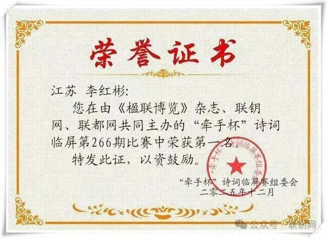 【第266期】“牵手杯”诗词临屏赛结果公布