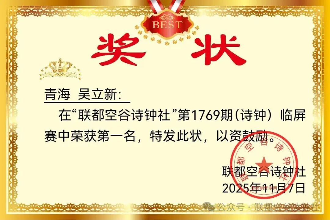 “联都空谷诗钟社”第1769期(诗钟)临屏赛结果公布
