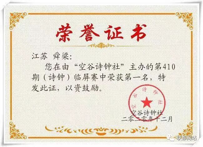 “空谷诗钟社”第410期(诗钟)临屏赛结果公布