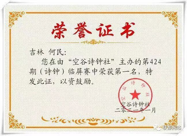 1、即日起,凡各期“空谷诗钟社”临屏赛获得第一名者,以及累计进入十佳三次及以上者,如果本人愿意,可由联都负责推荐加入中国楹联学会;符合条件的联友,请和吴海燕联系。