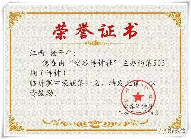 “空谷诗钟社”第503期(诗钟)临屏赛结果公布